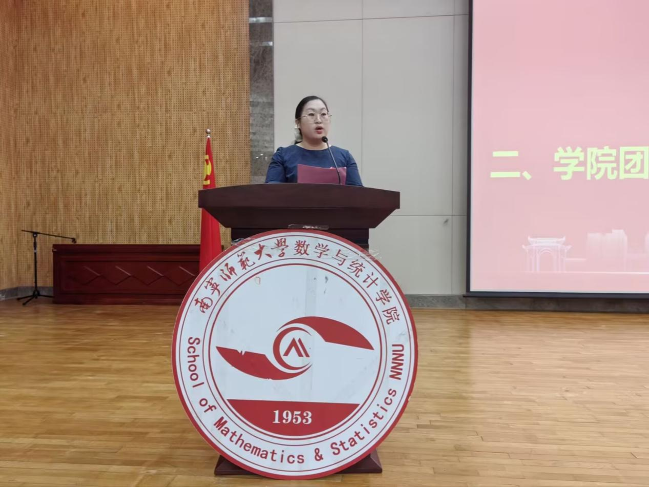 会上,学院党委副书记王卫彬发表讲话。他充分肯定学院团委学生会在组织建设、思想引领、品牌活动打造等方面的工作成效,并对全院青年提出三点期望:一是以严谨求实立心,做笃学慎思的求知者;二是以创新实践赋能,做敢闯敢试的开拓者;三是以团结协作凝力,做同心共济的同行者。他鼓励同学们将数学学科的严谨逻辑与统计方法融入工作实践,在学习中积累智慧,在锤炼中增强本领,努力成长为德智体美劳全面发展的高素质人才。