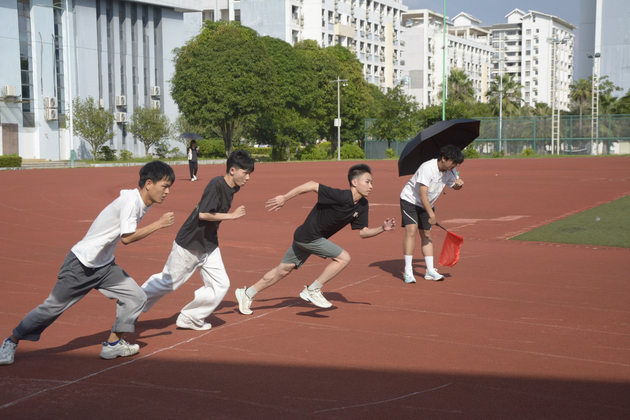 比赛现场精彩纷呈,赛事分上下午有序开展。上午,径赛400米、800米等项目率先开赛,运动员们在跑道上奋力奔跑,用速度与耐力点燃赛场激情;田赛高杆绣球、助跑跳远、前掷实心球等项目逐项进行,运动员们或专注投掷绣球,或奋力推出实心球,或蓄力助跑后纵身跃出,在赛场上展现多样运动风采与力量之美。下午,赛事热度持续攀升:径赛接力赛、200米等赛事接续进行,选手们全力奔跑,每一次精准的接力棒交接都牵动全场目光,将竞技氛围推向高潮;田赛背篓绣球中,每一次绣球抛出都是默契与技巧的结合;跳高、立定跳远项目中,同学们一次次挑战自我,不断突破极限;最后,长跑项目的运动员们以坚持不懈的毅力为赛事写下坚韧一笔。赛场旁,工作人员认真维护赛场秩序,记录下一个个精彩瞬间。