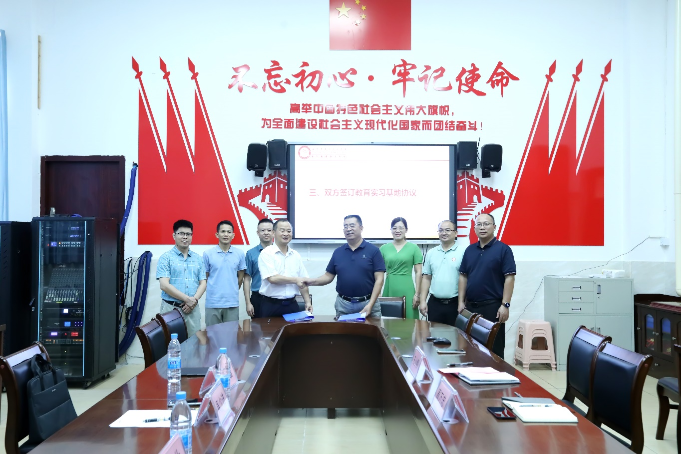 在双方代表的共同见证下,周万忠与吴少进共同签署了《beat365平台官方网站与南宁市第三十七中学关于建立教育实习基地的协议》。签约仪式后,双方出席人员共同为“beat365平台官方网站教育实习基地”揭牌。