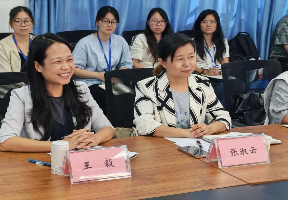 海晖路初级中学科研处主任陈伯儒主持会议并介绍嘉宾,强调此次合作是响应良庆区“校校协同育人”号召的具体实践,期待与高校共建教学实验基地。紧接着,校长程洪先在发言中指出,海晖路初级中学作为良庆海亮教育综合改革试点核心校,期待以此次合作为起点,将海亮教育优质资源与高校理论优势深度融合。文学院副院长张淑云介绍了文学院和陶行知实验班,对见习生提出了“深入思考互动、深入教学实践、深入调研活动”的要求。陶班负责人王毅老师叮嘱学生带上要求学生随身携带“三样法宝”:好奇心与观察眼、因材施教理念、反思与记录本。两位老师的发言见习生都听得很认真。