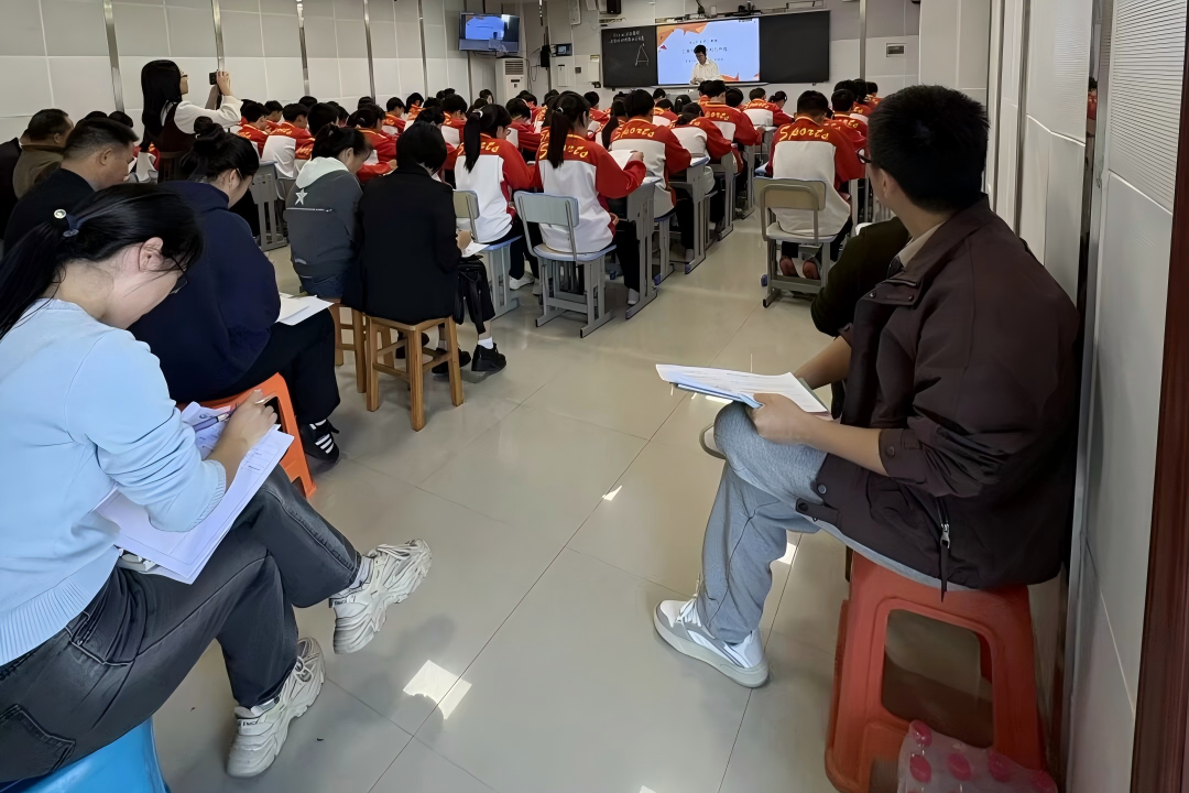 检查组一行通过“听、看、谈、评”多维度了解实习情况。在贵港一中,检查组参与“携手育桃李·实践启新程”实习中期交流活动,重点与学校指导老师、指导班主任深入交流,同时与实习生一对一沟通,从教学目标达成、重难点突破等方面给予针对性指导;在贵港市荷城中学,该校副校长杨永成在座谈中对我院实习生的表现给予高度评价,他表示:“贵校实习生专业基础扎实,工作态度认真负责,在教学实践中展现出的学习热情和成长速度令人欣喜,期待未来能与学院开展更深度的合作,共同为教育事业培养优质师资。”在港南二中,检查组通过开展座谈会的形式,深入了解实习生在岗表现,听取学校对学院实习安排的意见建议,同时关切询问实习生生活适应程度、工作困惑等情况,鼓励大家珍惜实践机会,主动向学校教师学习,在实践中锤炼教学技能。