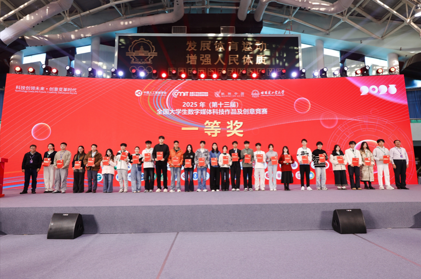 据悉,该赛事由中国人工智能学会与全国大学生数字媒体科技作品及创意竞赛组委会联合主办,哈尔滨工业大学等 45 所知名高校共同承办,是国内数字媒体领域极具权威性与影响力的全国性赛事。赛事历经校赛、省赛、全国复评等多轮严格评审,层层筛选出兼具创新性与实践性的优秀作品晋级全国总决赛。在总决赛现场,学院参赛团队与北京大学、清华大学、中国传媒大学、北京电影学院等高校团队同台竞技,通过作品现场展示、专业答辩等环节的激烈角逐,最终脱颖而出斩获一等奖,充分展现了学院学子过硬的创新实践能力与默契的团队协作精神。此次参赛过程中,学院得到了创新创业学院施夏珍老师的细心指导,给予专业建议,助力学子们在备赛路上少走弯路,以最佳状态迎接挑战。