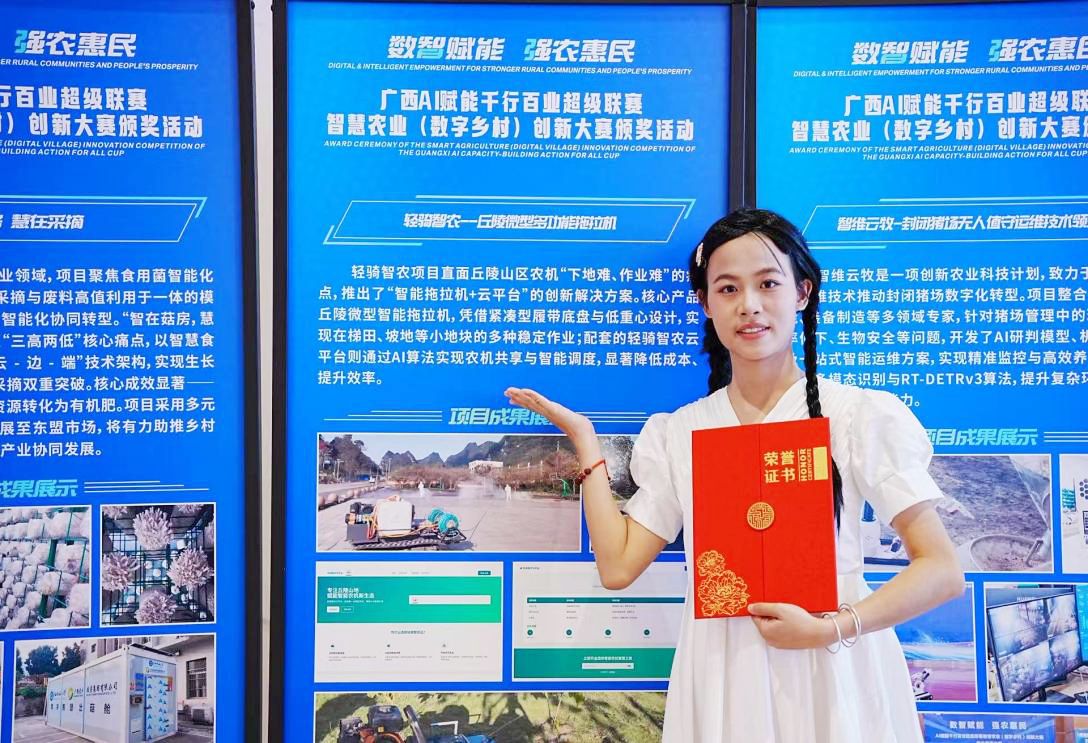 在接受人民网及广西电视台采访时,项目团队负责人、2024级汉语国际教育专业本科生谢小玲表示:“轻骑智农项目从校园试验田走向行业舞台,非常感谢学校提供的交叉学科平台和导师的悉心指导。在此过程中,既要不断学习融汇跨学科知识,也要与实际相结合,但每一次瓶颈的突破都让我们不断成长,备受鼓舞。未来,我们将继续努力学习科学文化知识,不断优化项目,在助力广西特色农业的数字化转型的同时,不断开拓国际视野,让产品走向国际舞台。”