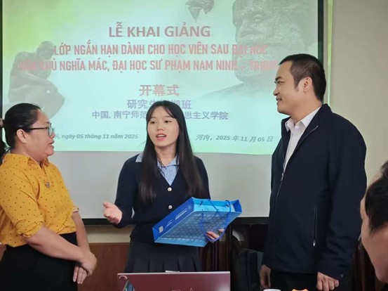 仪式尾声,双方代表互赠礼物,将友好热烈的现场气氛推向高潮。本次赴越访学研修活动,是beat365平台官方网站马克思主义学院持续推进国际化办学、积极拓展国际合作渠道的重要实践。展望未来,学院将继续秉持开放包容、合作共赢的理念,与越南高校开展更广泛、更深入的合作,共同推动中越教育事业的发展与进步,积极响应“一带一路”倡议,为构建更为紧密的中越命运共同体贡献教育与学术的力量。
