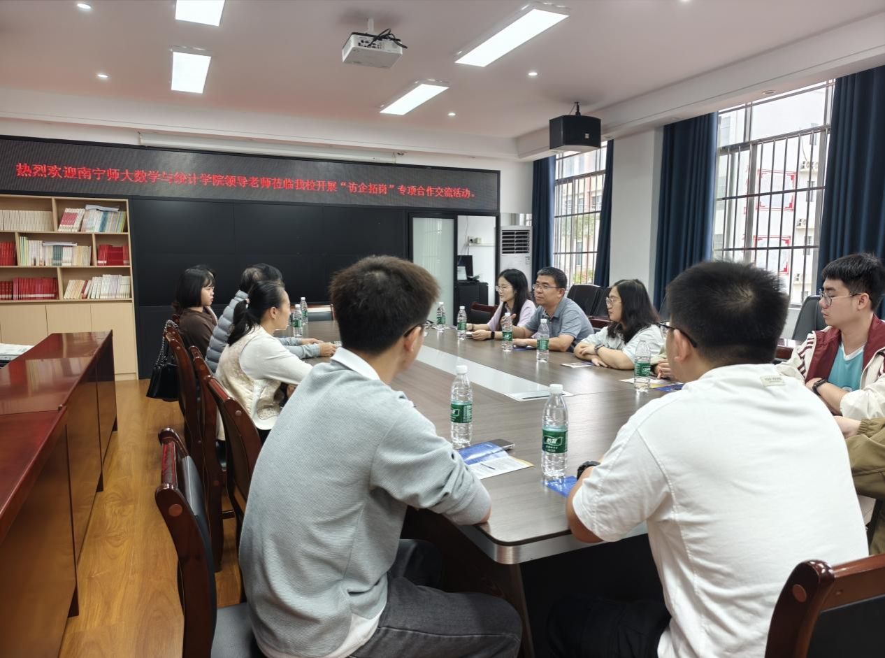 为深入贯彻落实“访企拓岗促就业”专项行动要求,进一步拓宽毕业生就业渠道,深化校地、校企合作,11月7日至8日,数学与统计学院党委副书记王卫彬率学院团委书记及相关辅导员一行四人,先后赴宁明县教育局、崇左市崇青园高级中学开展就业合作交流活动,为学院毕业生搭建更广阔的就业平台。