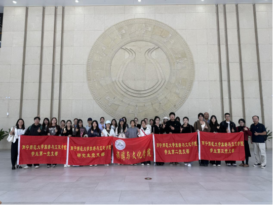 新书分享会,学院教工党支部书记甘政作为学院代表,接受了《阵地》新书捐赠,为学院红色文化育人增添了宝贵的精神教材。会后,师生党员走进广西壮族自治区博物馆“精神的阵地——广西文化抗战特展”展厅。展厅内,《救亡日报》复刻版、抗战时期文艺演出海报、文化界人士手稿等珍贵文物,与书中记载的历史情节相互呼应、互为印证,让抽象的历史变得可感可触。在“全民抗战”主题展区前,师生们驻足良久,认真聆听讲解、交流感悟,深切体会到文化抗战在凝聚民族精神、助力全民抗战中的重要作用。观展中,学院党员师生还非常荣幸地与中国著名出版家、作家、原中国出版集团公司总裁聂震宁先生以及广西师范大学出版社领导共同交流、合影。