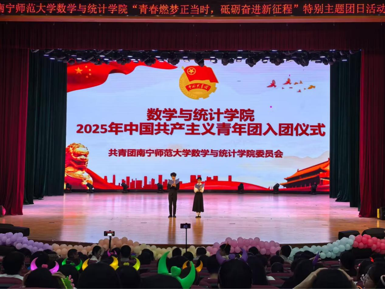 为了铸牢使命意识,激发奋进力量,11月15日晚,数学与统计学院在音舞楼千人演播厅举办“青春燃梦正当时,砥砺奋进新征程”特别主题团日活动暨2025年下半年入团仪式。学院领导班子、全体辅导员、教师代表以及2025级全体同学参加本次活动。