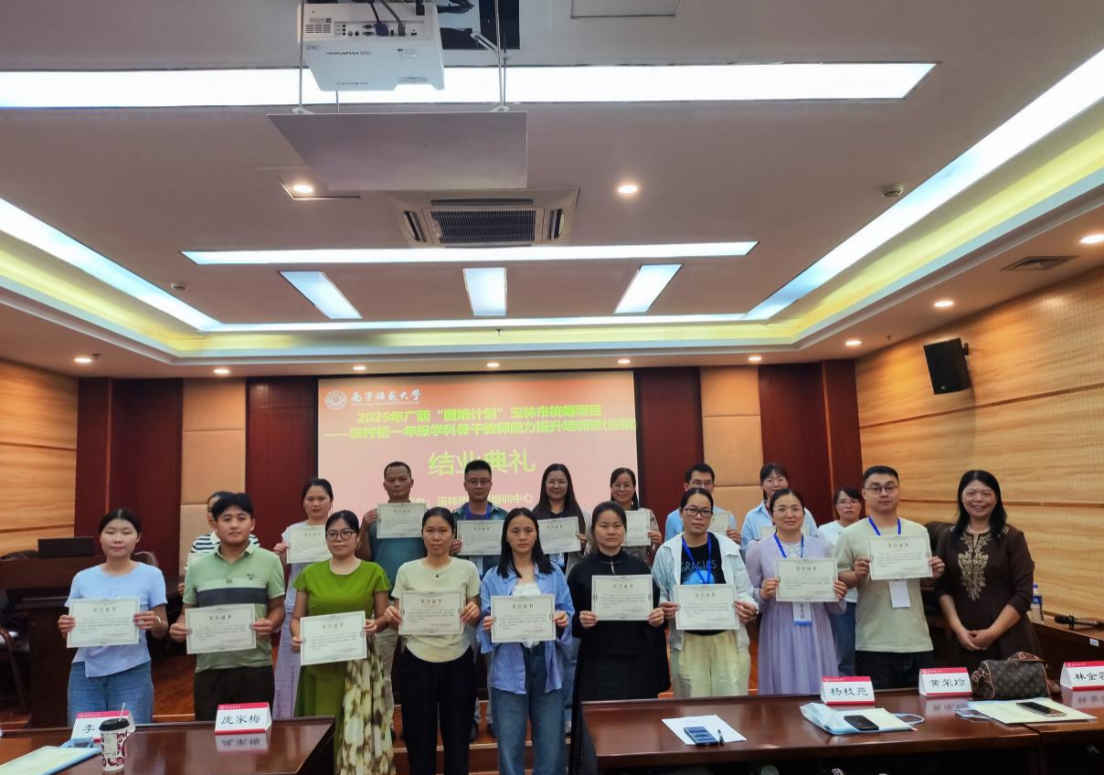 10月25日,由玉林市教师培训中心主办、beat365官网环境与生命科学学院承办的广西2025年“国培计划”玉林市统筹项目——农村初一年级学科骨干教师能力提升培训班(生物)圆满结束。beat365官网环境与生命科学学院院长何英姿,来自玉林市的60名初中生物学教师参加了毕业典礼。