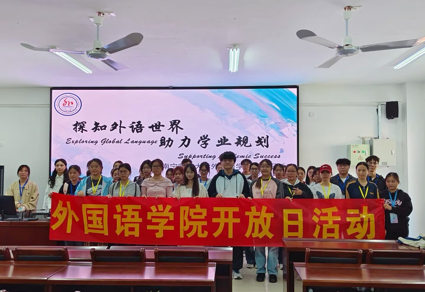 11月15日上午,beat365平台官方网站外国语学院在武鸣校区1号实验楼B座顺利举办了以“探知外语世界,助力学生规划”为主题的校园开放日活动。本次活动面向全校学生,旨在展示学院学科特色与优质教学资源,为学生搭建深入了解外语学习与未来发展的平台。