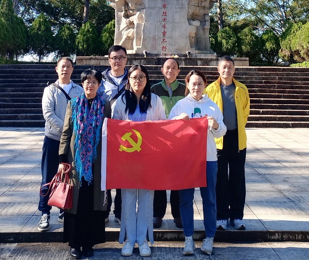 11月20日上午,外国语学院教工第二支部在南宁市武鸣区人民公园中的革命烈士纪念碑开展“缅怀革命先烈 弘扬廉政精神”主题党日活动。支部党员学习先烈的大无畏的牺牲精神,以忠诚干净担当的精神,发挥先锋模范作用,促进党建工作,充分发挥党组织和党员同志在教学科研学术交流中的作用。