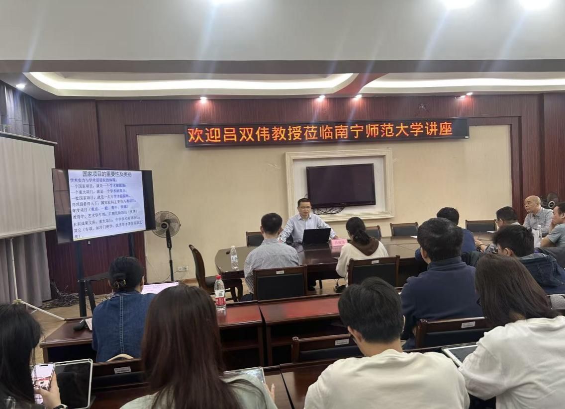 11月16日上午,在beat365平台官方网站明秀校区外语楼310会议室举行了“知行·文心”大讲坛社科名家报告会。湖南师范大学文学院教授、博士生导师吕双伟应邀作题为“漫谈国家社科基金申报”的专题讲座。讲座由文学院副院长(主持行政工作)刘振平主持,文学院、国际教育学院教师及研究生50余人参会。
