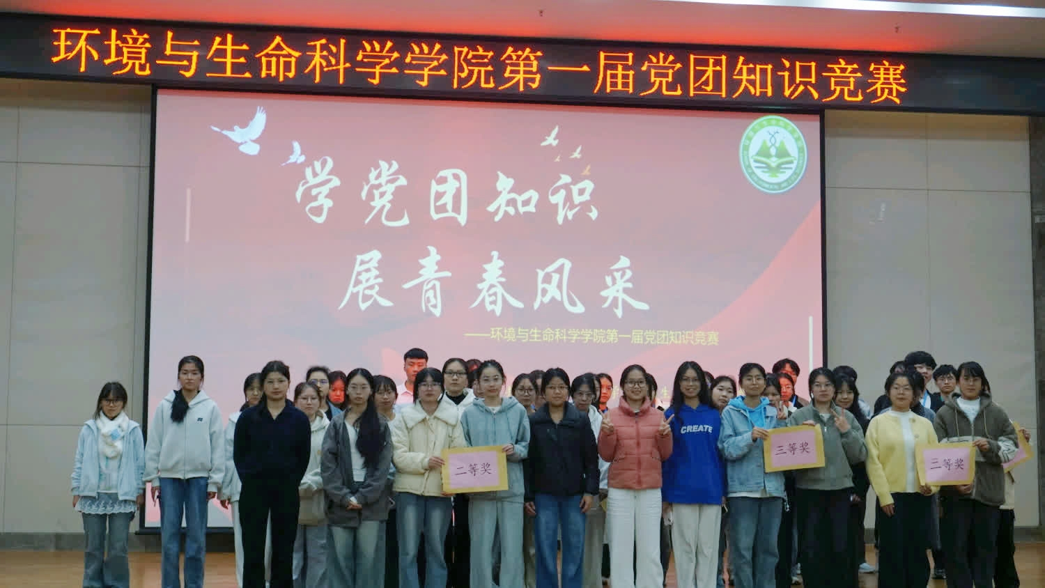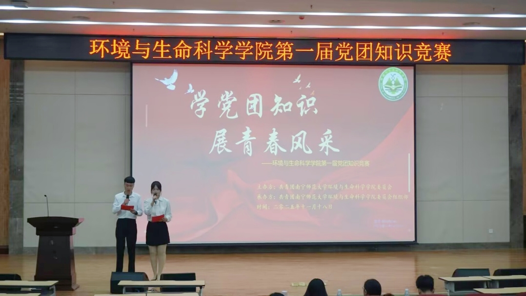 为了深化青年学子对党的创新理论、党史国史及团史的基本知识的理解,激发爱国爱党热情,锤炼政治素养与思辨能力,环境与生命科学学院于11月18日晚在武鸣校区图书馆报告厅成功开展第一届党团知识竞赛。学院辅导员甘佩萍、兼职辅导员庞政和陆佳丽作为嘉宾出席本次竞赛。