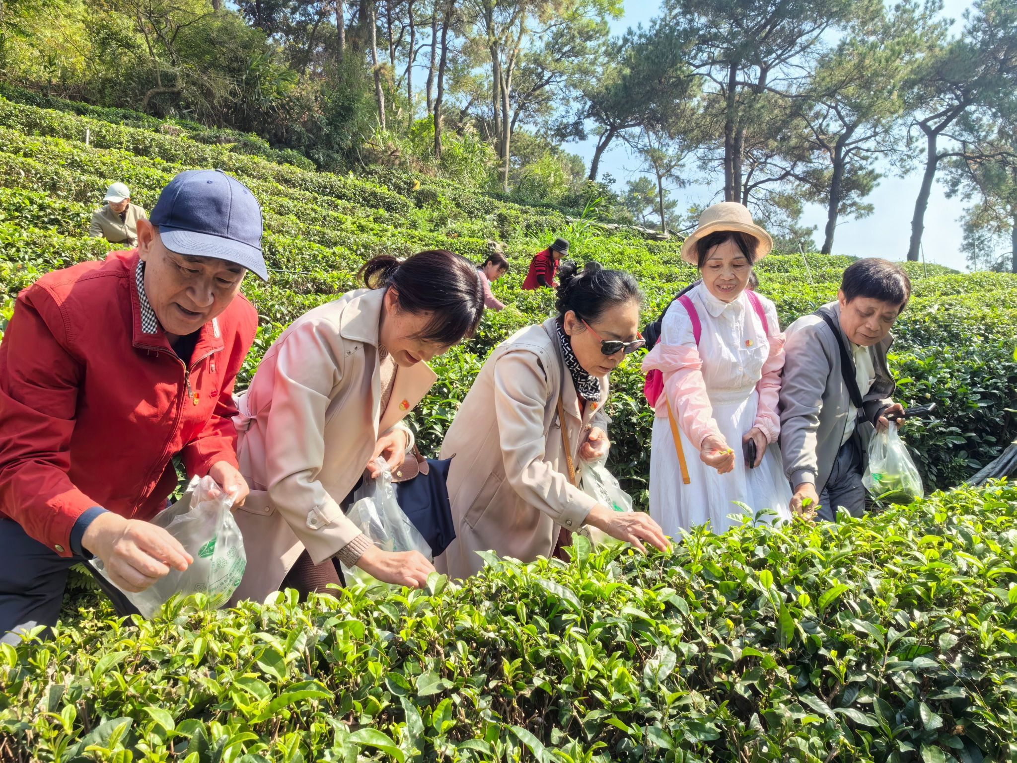 期间,党员们踏上红色步道,沿着党的一大至党的十九大的历史脉络重温党的奋斗征程,感悟本土革命先辈的英勇事迹;走进华纳先锋党建馆与纳米钙数字科技展厅,亲身体验“党建+科技”的创新实践,感受党建引领下企业发展的蓬勃活力;在生态茶园参与采茶、炒茶劳动实践,在指尖与茶青的触碰中体悟“一分耕耘一分收获”的朴素哲理,于茶香氤氲间淬炼清正廉洁之心;老党员们结伴漫步于暖阳清风中,在革命足迹与科技场景中驻足交流,不时合影留念,现场洋溢着温馨和谐的氛围。大家纷纷表示,此次活动既是一次深刻的思想“补钙”,更是一次温暖的精神“养心”。作为离退休党员干部,将继续发挥政治优势与经验优势,传承红色基因,严守纪律规矩,以清廉本色践行初心使命,为社会发展贡献银发力量。