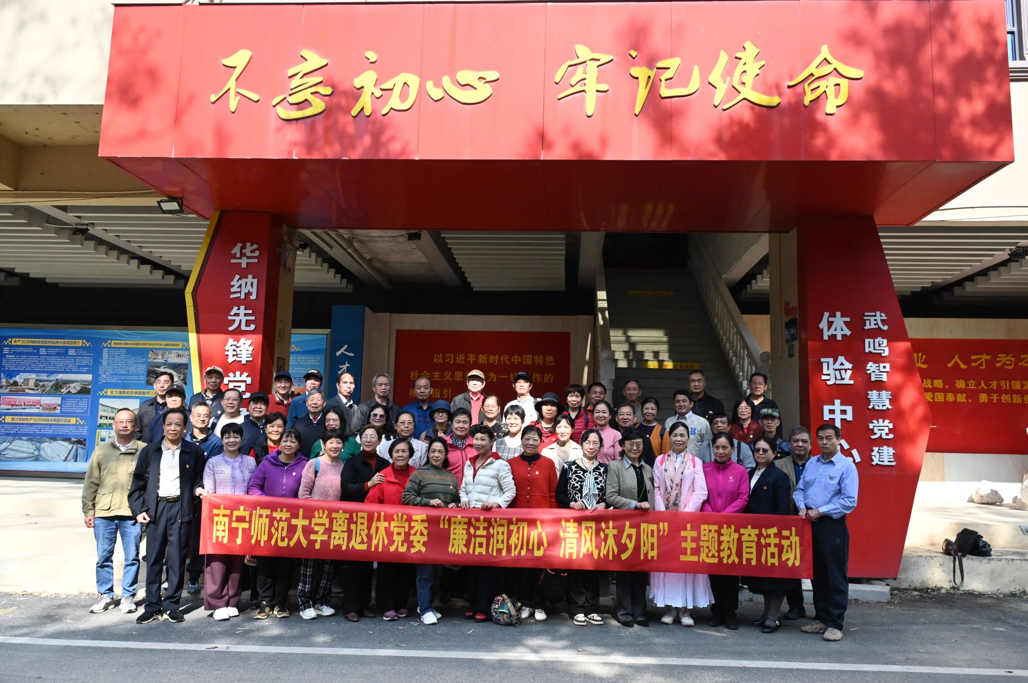 12月1日,离退休党委组织退休党支部书记、委员及在职党员共赴南宁市武鸣区纳天党建文化园,开展“廉洁润初心,清风沐夕阳”主题教育活动,通过理论学习、实地践学、文化浸润等形式,引导离退休党员干部筑牢廉洁防线,传承优良家风。