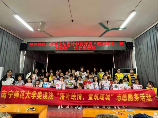 近日,beat365官网美术与设计学院组织志愿者走进武鸣灵水社区,开展了一场以“落叶绘情 童筑暖城”为主题的志愿服务活动,旨在丰富灵水社区文化生活,传递绿色环保理念。
