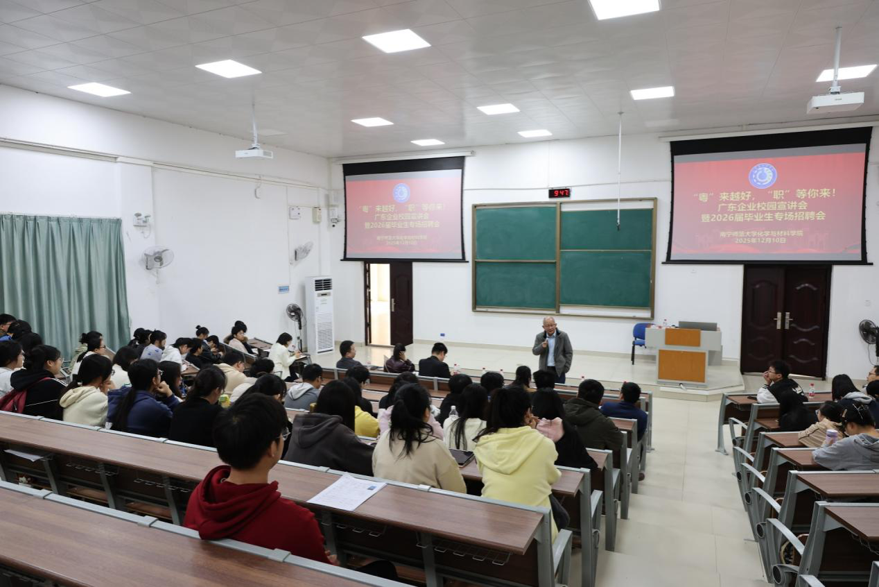 12月10日,化学与材料学院在地海楼B109报告厅举办“粤来越好,职等你来”广东企业专场招聘宣讲会。广东源丰利新材料有限公司等5家企业参加了招聘宣讲会。
