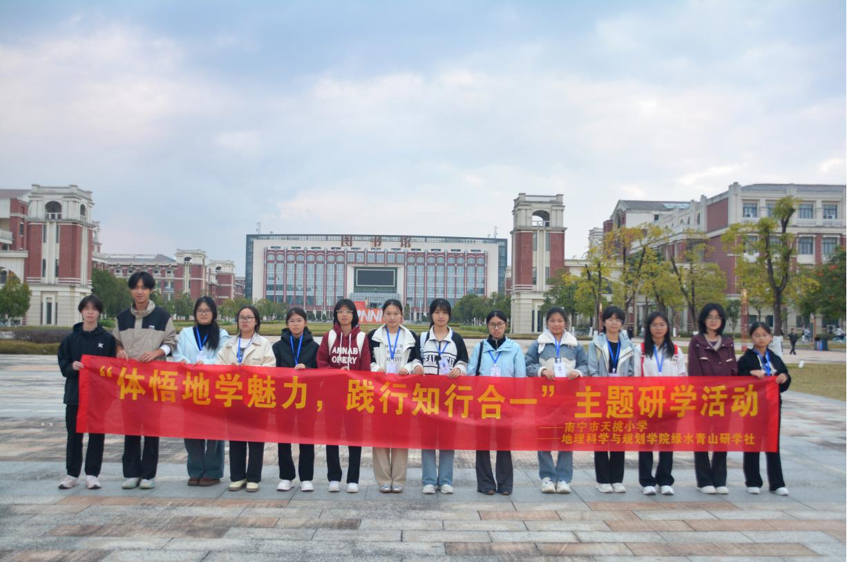 为深入贯彻落实党的二十大精神,扎实推进“知行合一”育人理念落地见效,12月14日上午,beat365官网地理科学与规划学院绿水青山研学社携手南宁市天桃实验学校银杉校区,在武鸣校区成功举办“体悟地学魅力,践行知行合一”主题研学活动,让小学生走出课堂,沉浸式感受地理学的独特魅力。