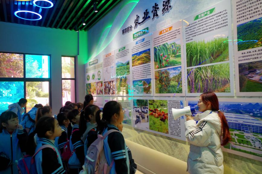期间,研学队伍先后参观了自然资源科普基地与天文圆顶。在自然资源科普基地,志愿者围绕广西独特的自然资源,结合区域生态保护案例,讲解了自然资源合理开发与生态环境保护的重要意义;在天文圆顶内,研学队伍通过观看宇宙主题影片,沉浸式领略星座分布、星系结构等天文景观,深化对地理空间的感知,逐步形成“观察—思考—实践”的完整认知闭环。