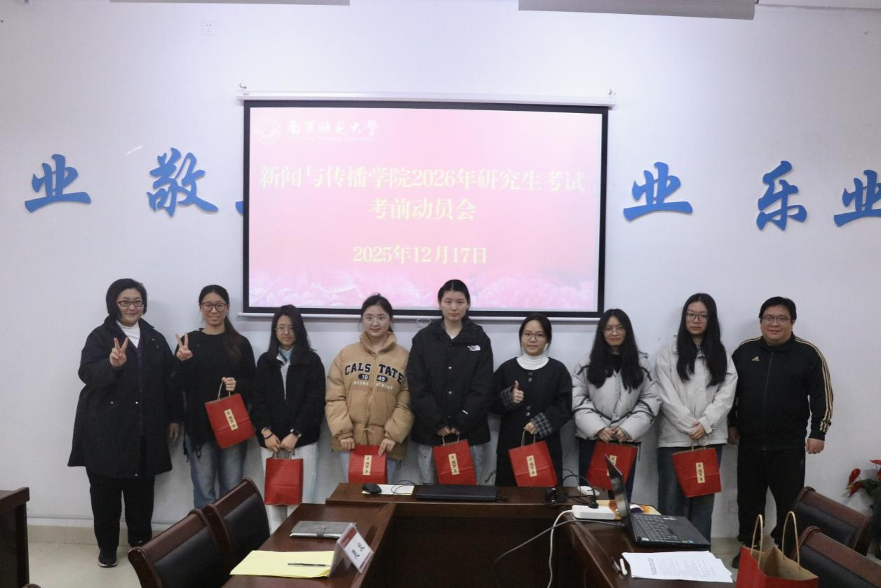 12月17日上午,新闻与传播学院在理综楼304会议室隆重举行2026年研究生考试考前动员会暨诚信教育专项活动。学院党委书记聂卉、院长梁颖涛、党委副书记黄敏以及2022级全体考研学子参加活动。活动由学工办辅导员惠旋主持。