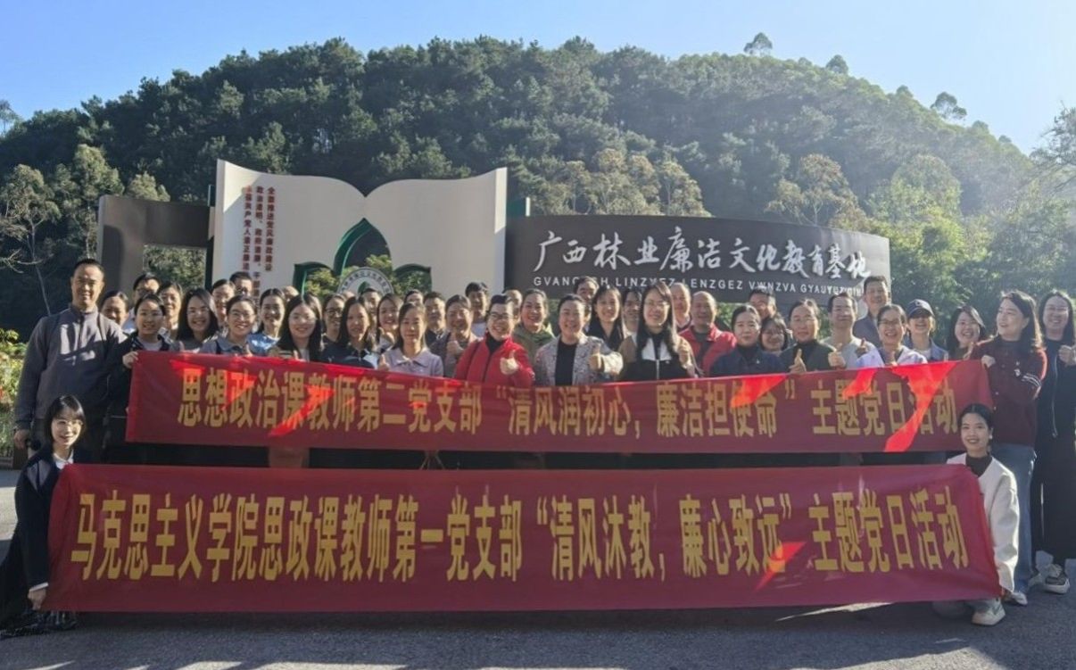 为深入实施新时代立德树人工程,加强高校基层党组织建设,强化思政课教师的党性修养与廉洁从教意识,近日,马克思主义学院党委组织全体教工党员赴广西林业廉洁文化教育基地,开展了一场主题鲜明、内容丰富的主题党日活动。