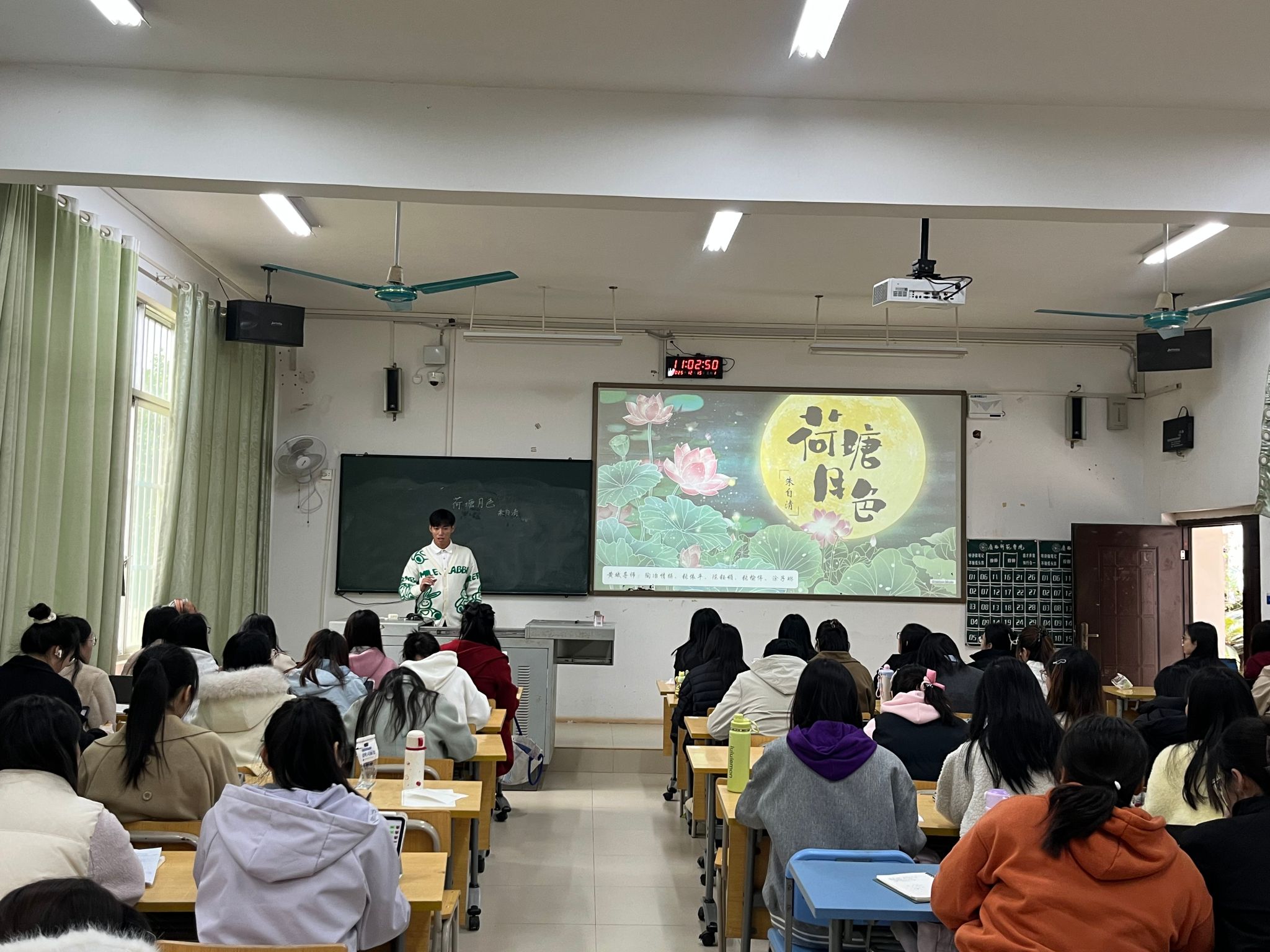 2025年12月15日,文学院2025级学科教学(语文)专业在五综110教室成功举办了一场别开生面的《荷塘月色》模拟课堂教学研讨活动。本次活动由韦美日教授主持,旨在探索语文教学实践与科学评价深度融合、双向共生的新路径。