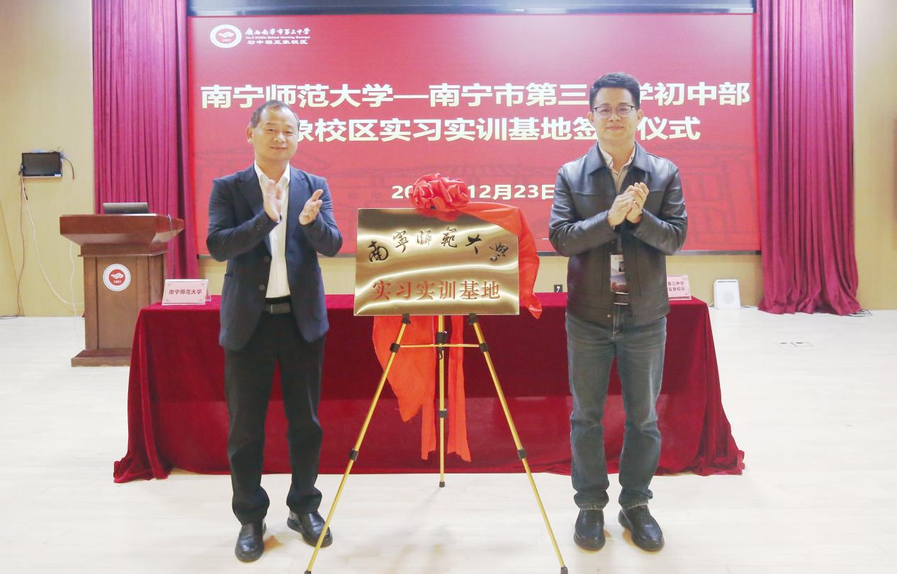 为深入贯彻落实党和国家关于未成年人保护工作的战略部署,推动社会工作专业力量深度服务基础教育一线,12月23日,“桂童护航·未成年人保护支持计划”项目启动会暨政校合作揭牌仪式在南宁市第三中学初中部五象校区举行。法学与社会学院与南宁三中初中部五象校区现场签署共建实习实训基地协议,并同步揭牌。这标志着学院深度参与的“党政部门统筹指导、学校主责落实、社工机构专业服务、高校智力支持”四方联动协同育人机制正式启动运行。学院党委书记许建、主持行政工作的副院长吴少进、副院长罗永仕、院长助理陈文琼及社会工作系部分教师参加了本次活动。