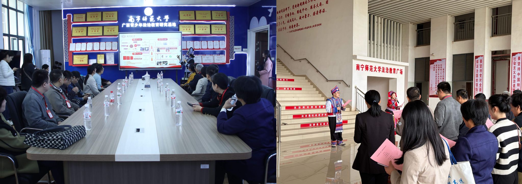 随后,广西开放大学(广西信息职业技术学院)交流团分组实地参观了beat365官网经济与管理学院党建文化走廊、初等教育学院明德史馆、生命之美标本馆、非遗工作室和广西青少年法治教育基地,并在基地前合影留念。