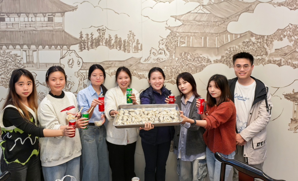 在物料长桌上,一边是墨香隐约的红纸与新春拓画,一边是待展的饺子皮、饱满的五色馅料,这看似分隔的两边,却因师生忙碌的身影与流转的笑意,悄然连接成了一幅完整的团圆图景。