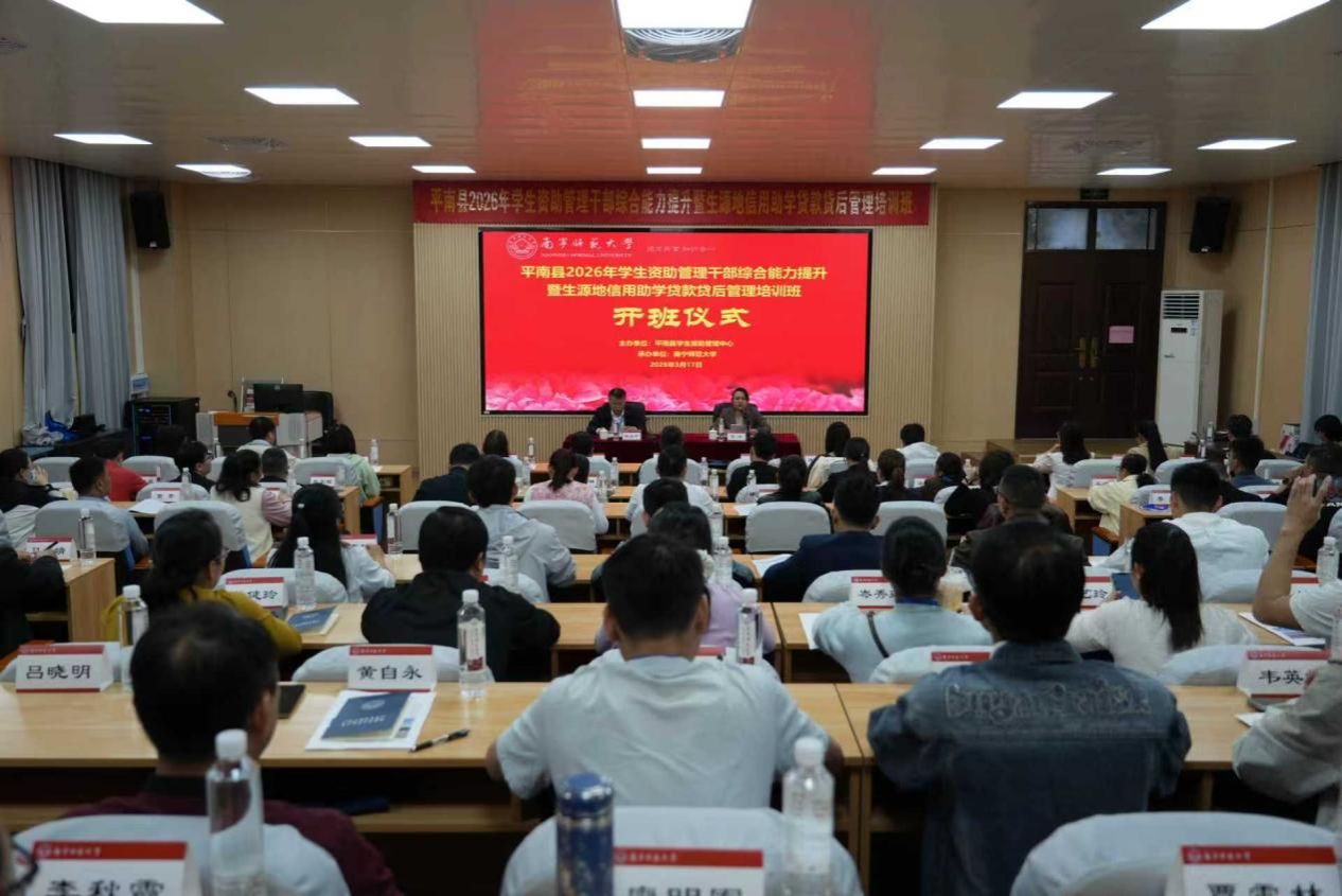 3月17日,由平南县学生资助管理中心主办,beat365官网承办的“平南县2026年学生资助管理干部综合能力提升暨生源地信用助学贷款贷后管理培训班”正式开班,82名学员参加本次培训。