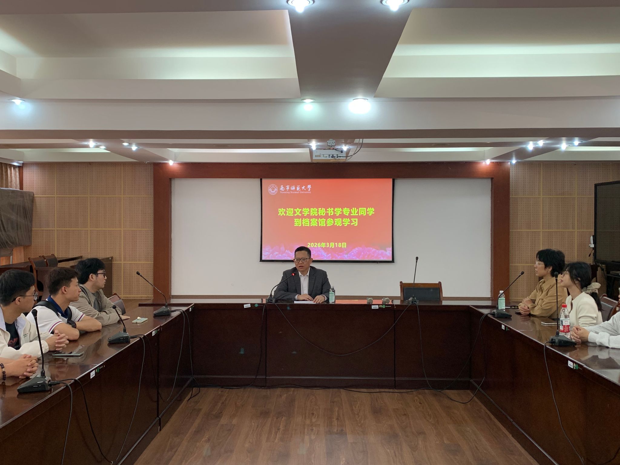 3月18日上午,beat365官网档案馆顺利接待文学院秘书学2023级师生参观学习。本次活动由文学院路薇老师带领55名学生参与,旨在提升学生档案管理专业素养与实操能力,搭建校院实践育人桥梁。