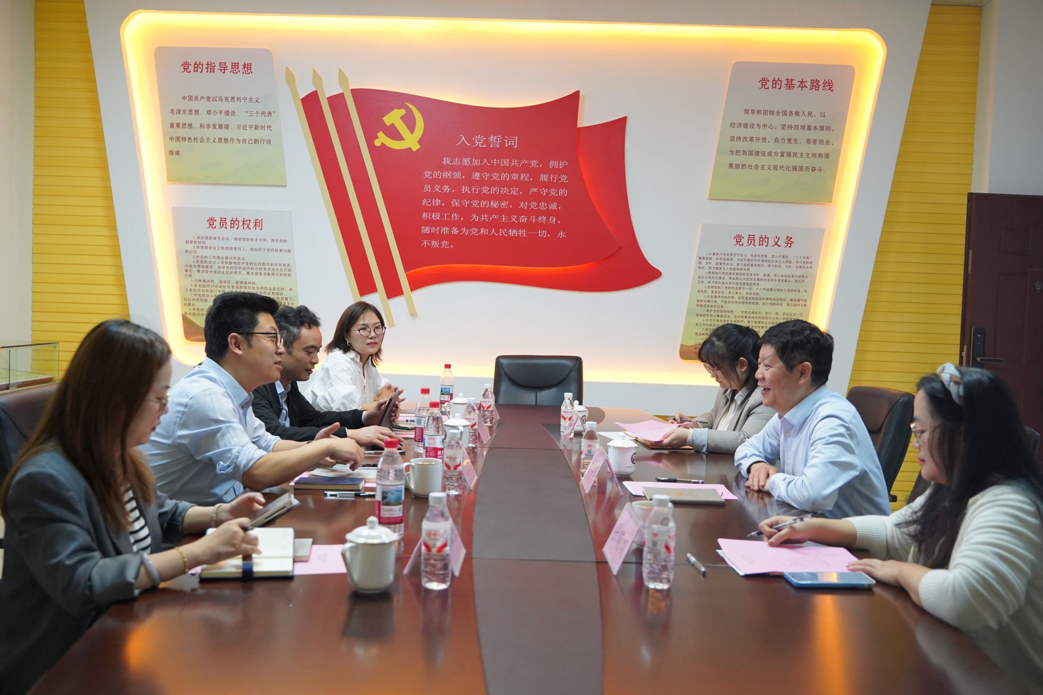 随后,双方在五合校区8B212党员活动室举行专题交流座谈会。会上,曾令辉院长代表学院对吴文杰书记一行的到来表示热烈欢迎,介绍了学院的建设发展概况。双方围绕马克思主义理论学科专业建设、辅导员队伍专业化建设、人才培养模式创新等核心工作,进行了深入探讨和细致交流,重点就学科建设对标提升、破解发展瓶颈、打造可复制可推广的工作模式等方面深入研讨、凝聚共识。西南大学马克思主义学院一行毫无保留地分享了其在学科建设、办学治院等方面的先进经验——该校正在推进马克思主义理论学科一流学科培育,在学科发展规划、人才梯队构建、科研平台升级等方面成效显著,为学学科建设提供了宝贵借鉴。吴文杰对学院的精心安排和经验分享表示衷心感谢,并希望两院进一步深化常态化交流合作,互学互鉴、优势互补,共同推动马克思主义学院高质量发展。