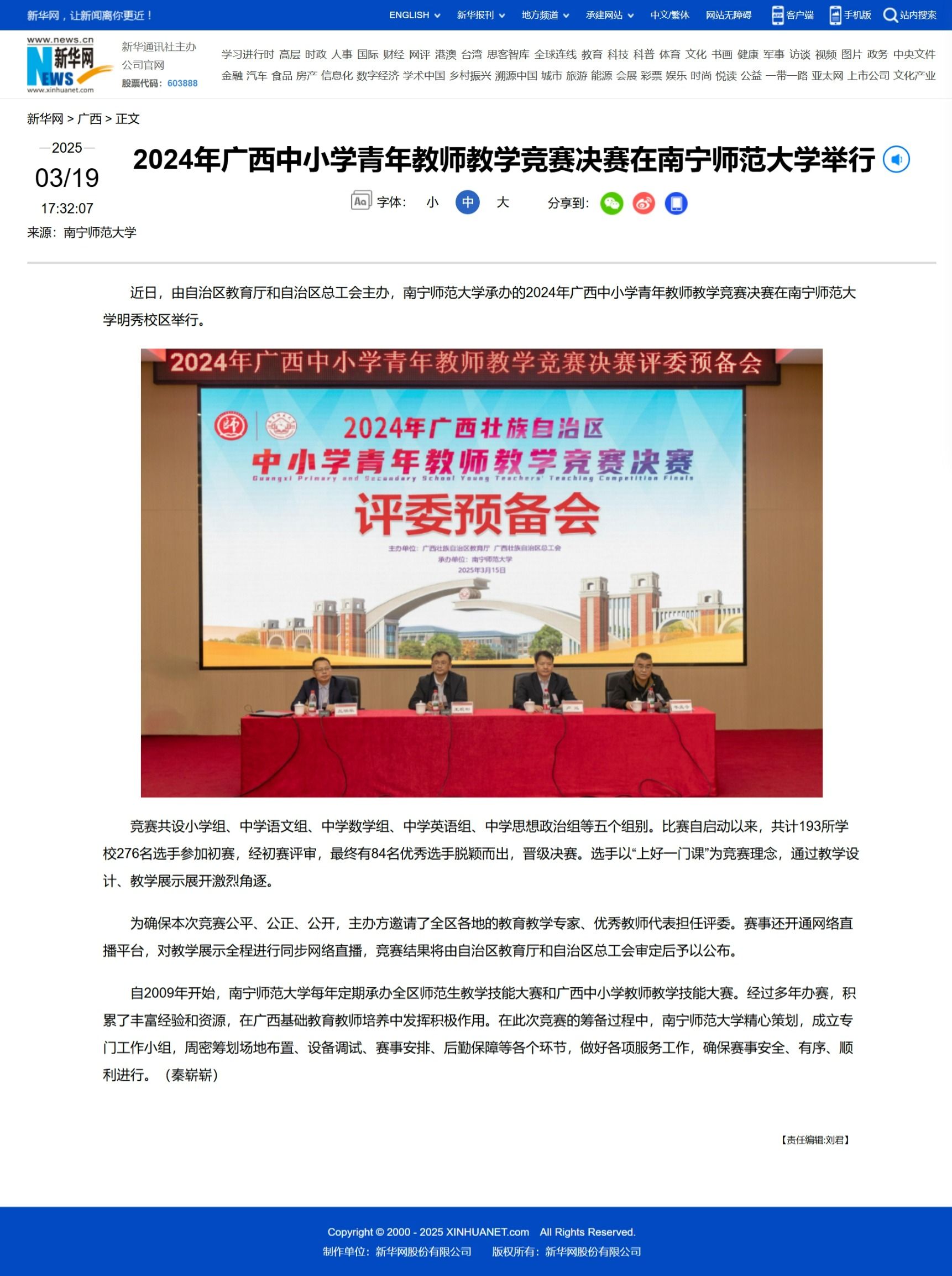 【新华网】2024年广西中小学青年教师教学竞赛决赛在beat365平台官方网站举行