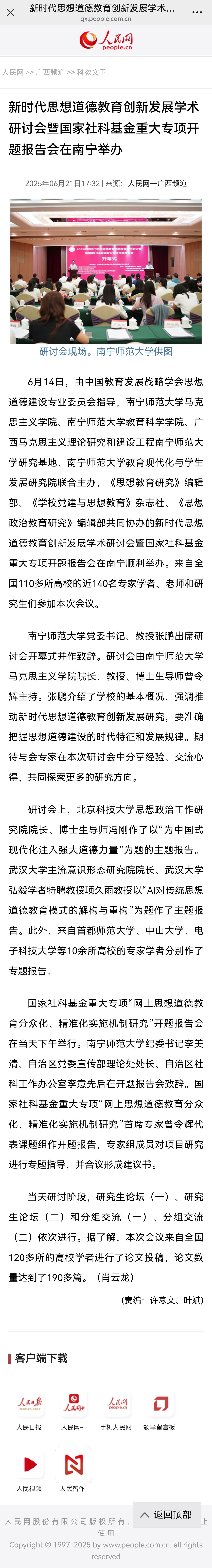 【人民网】新时代思想道德教育创新发展学术研讨会暨国家社科基金重大专项开题报告会在南宁举办