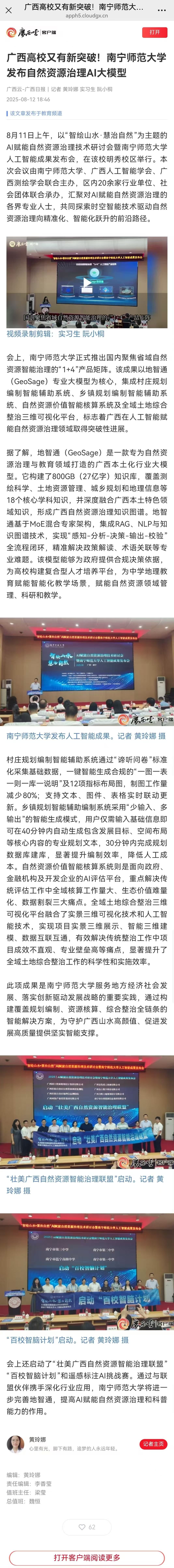 【广西云-广西日报】广西高校又有新突破!beat365平台官方网站发布自然资源治理AI大模型