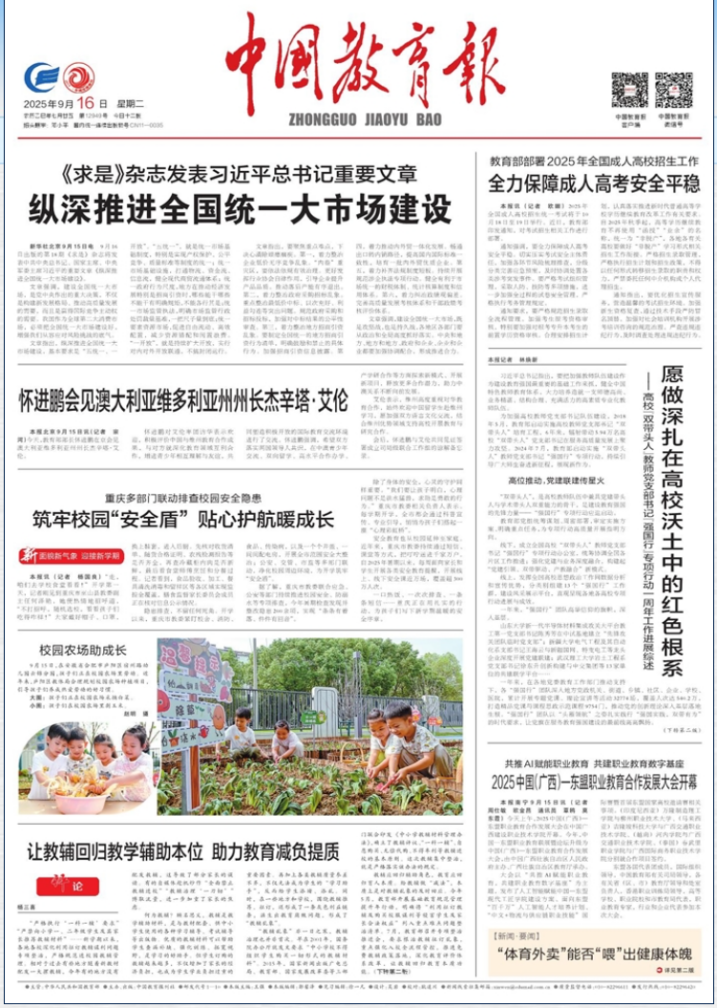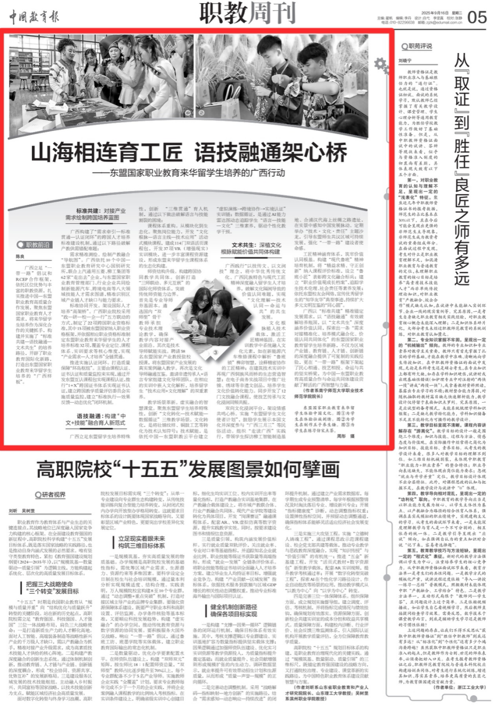 2025年9月16日,《中国教育报》刊发beat365官网职业技术师范学院陈良院长署名文章《山海相连育工匠语技融通架心桥——东盟国家职业教育来华留学生培养的广西行动》,全文如下——