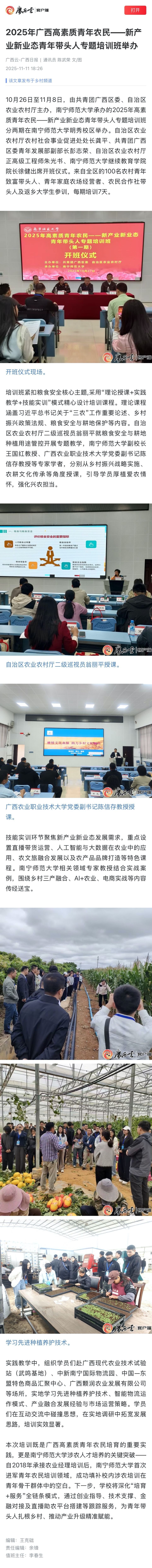 【广西云-广西日报】2025年广西高素质青年农民——新产业新业态青年带头人专题培训班举办