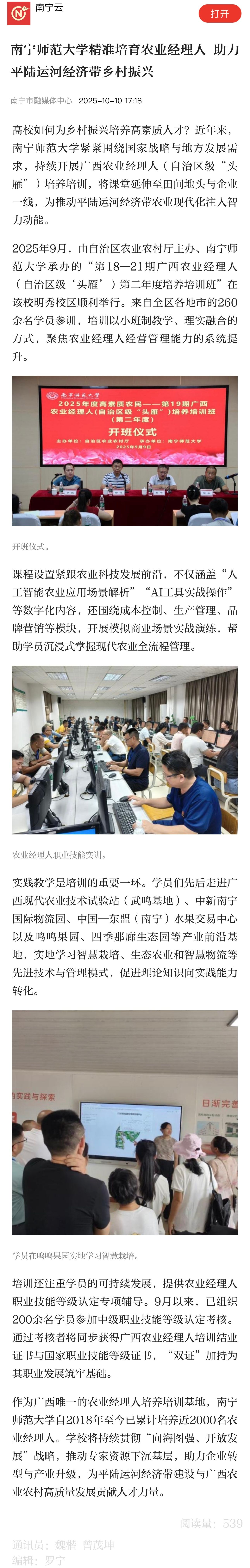 【南宁市融媒体中心】beat365平台官方网站精准培育农业经理人 助力平陆运河经济带乡村振兴