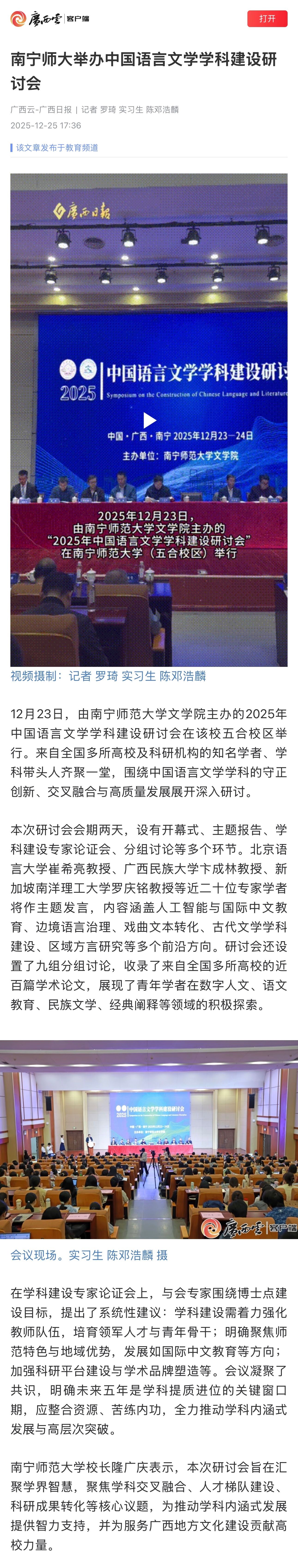 【广西日报-广西云客户端】南宁师大举办中国语言文学学科建设研讨会