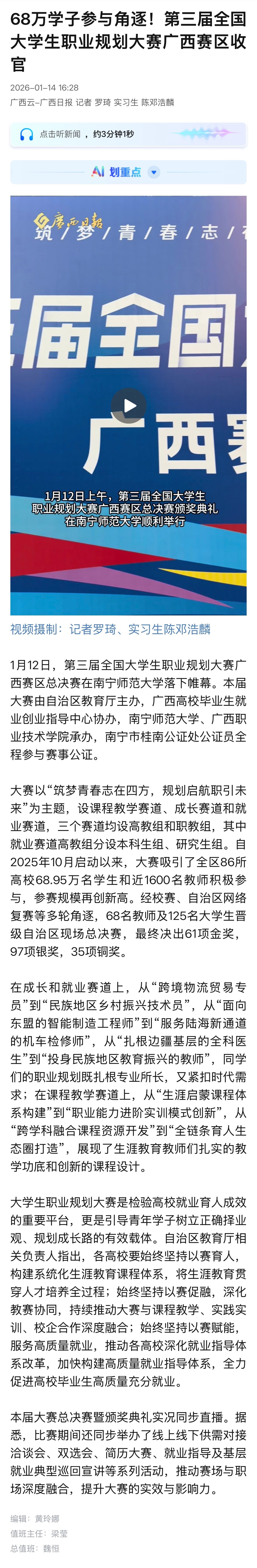 【广西云】68万学子参与角逐!第三届全国大学生职业规划大赛广西赛区收官
