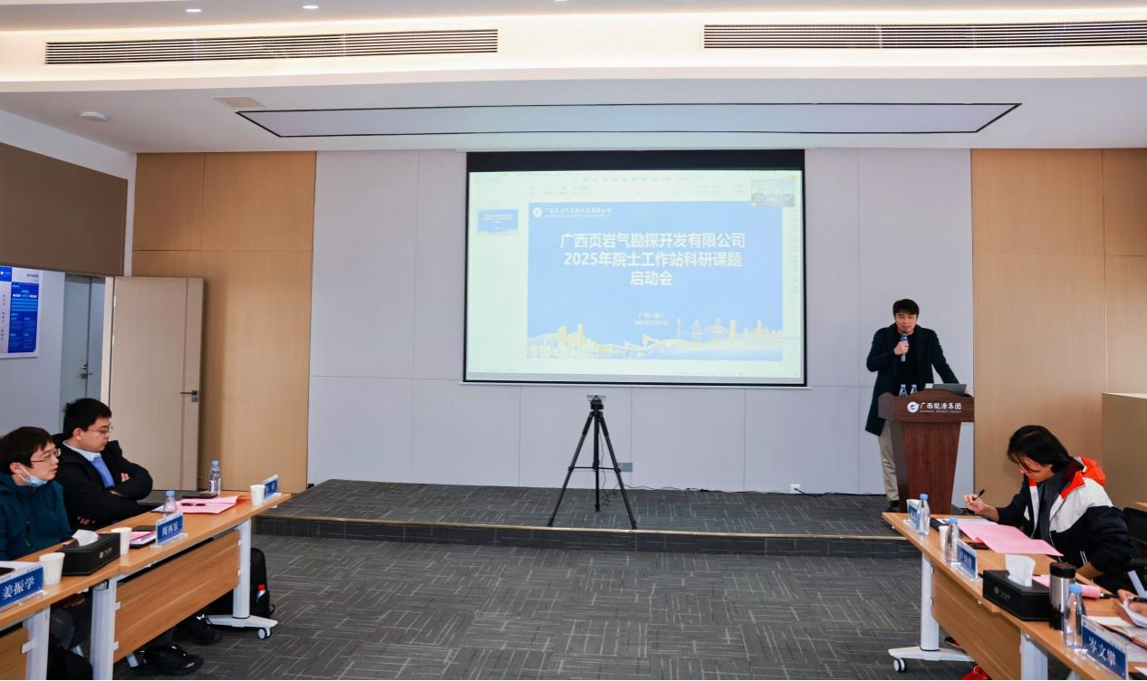 2025年1月18日,三家联合单位代表齐聚广西页岩气效益化勘探开发院士工作站召开项目实施研讨会,beat365官网地理科学与规划学院教师卢炳雄副教授就详细阐述了桂中坳陷富有机质页岩形成条件。项目指导专家康玉柱院士在总结发言时提出桂中页岩气的勘探要做到“三个抓”,即“一抓分布,二抓特征,三抓前景”的项目实施要求。