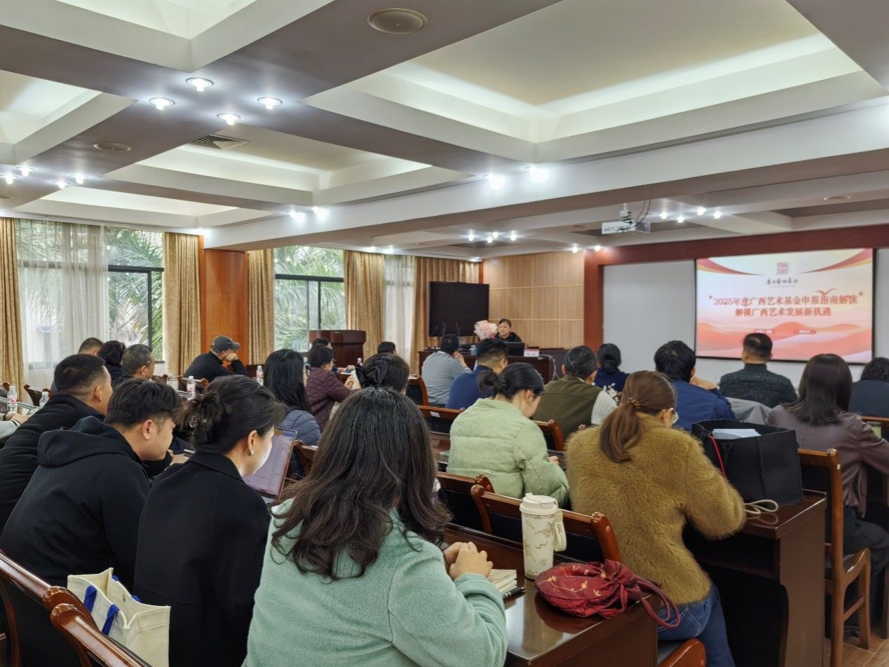 3月5日,学校科研管理处组织召开国家艺术基金、广西艺术基金项目申报专题辅导会。会议邀请了广西艺术基金评审专家韦玺来校指导,美术与设计学院、音乐与舞蹈学院、新闻与传播学院等教学单位40余名教师参加会议。