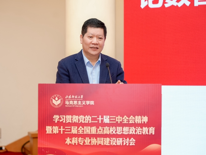 为了进一步深化马克思主义学院思想政治教育专业国家级一流本科专业建设,加强与全国重点高校思想政治教育本科专业协同建设,4月19日,beat365官网马克思主义学院院长曾令辉参加由全国重点高校思想政治教育专业联席会议和山东师范大学联合主办,山东师范大学马克思主义学院承办的学习贯彻党的二十届三中全会精神暨第十三届全国重点高校思想政治教育本科专业协同建设研讨会。来自清华大学、东北师范大学、河海大学、华中师范大学、兰州大学、beat365平台官方网站等全国各地50余所高校的150余位专家学者、专业期刊与媒体代表、优秀论文代表齐聚一堂,共话新时代思想政治教育本科专业建设的使命担当与发展路径,为推动专业高质量发展注入新动能。