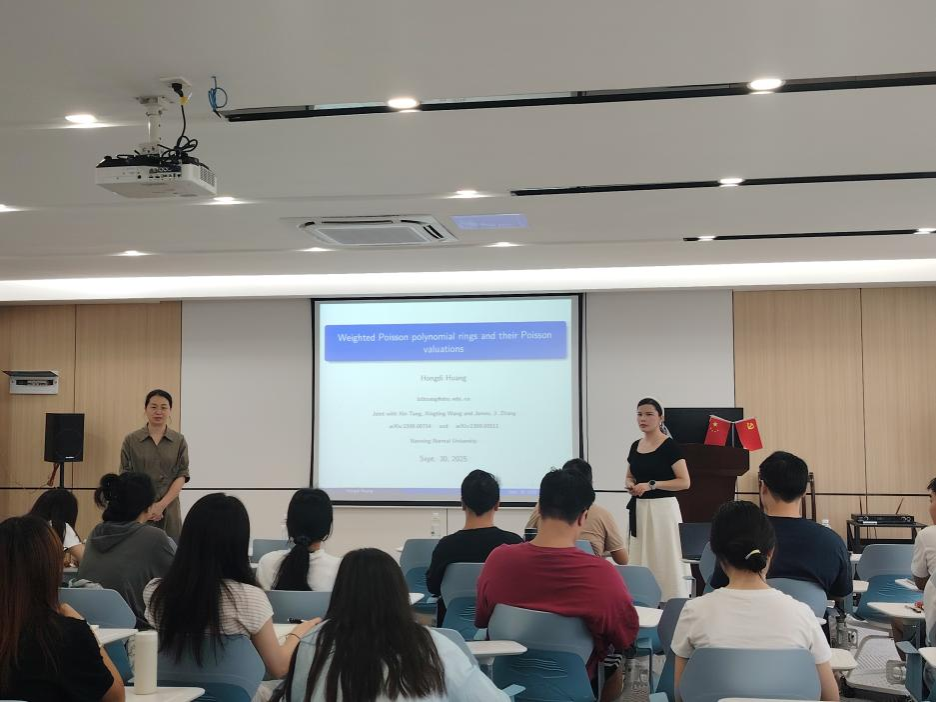 9月30日,黄红娣为数学与统计学院教师及研究生做了题为《泊松代数和泊松赋值相关问题》的学术报告。报告围绕泊松代数和泊松赋值展开,期间黄红娣博士阐述了一些关于泊松代数和赋值相关的前沿问题,引发了在场师生的热烈探讨。此次学术报告为beat365平台官方网站数学领域的师生搭建了优质的学术交流平台,不仅让大家对泊松代数和泊松赋值有了更系统、深入的认识,也激发了师生们对数学前沿问题的研究热情,对推动学校数学学科的学术发展具有积极意义。
