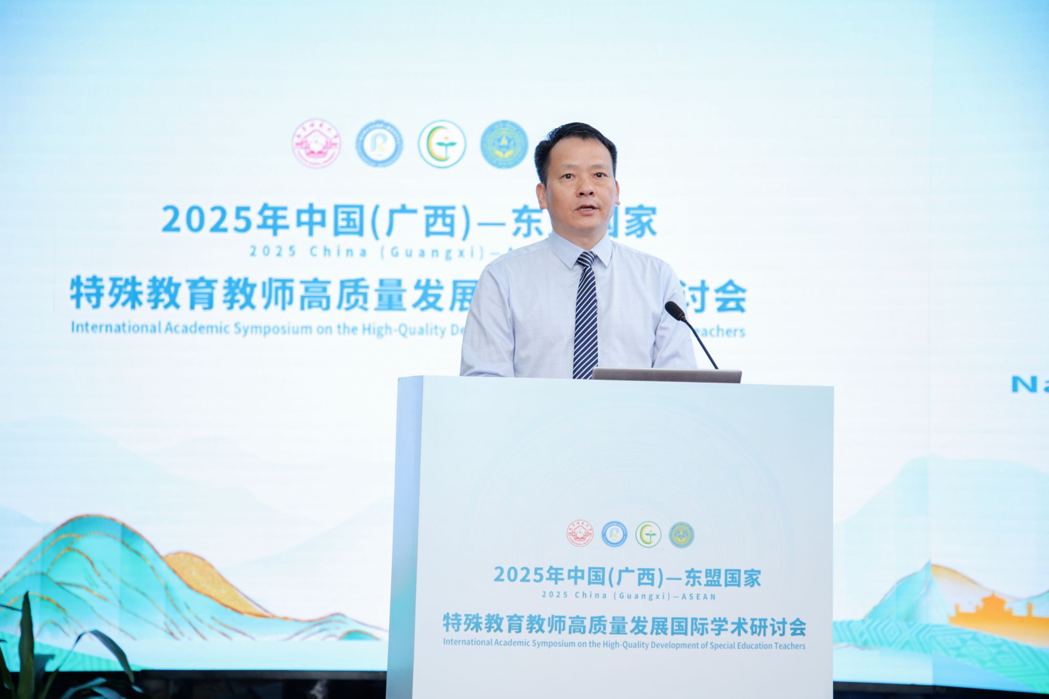 10月11日至10月12日,由beat365平台官方网站主办,beat365平台官方网站教育科学学院、beat365平台官方网站国际交流合作处/国际教育学院、广西高等教育学会外国留学生教育管理专业委员会、广西高校人文社科重点研究基地一广西教育现代化与质量监测研究中心、广西残疾人康复协会融合教育专业委员会、广西残疾人康复协会听力言语康复专业委员会协办的2025年中国(广西)-东盟国家特珠教育教师高质量发展国际学术研讨会顺利举行。会议以“特殊教育教师专业发展”与“AI赋能科技助残”为主题,吸引了来自国内外高校、康复机构、特殊教育学校、普通中小学专家学者、一线教师和特殊教育专业的学生共390余人参会。大会设1个主会场,6个分会场。此外,大会还包括研究生论坛、东盟来华留学生教学与管理研究、第三届广西残疾人康复协会听力言语康复专业委员会换届大会、第一届广西残疾人康复协会融合教育专业委员会成立大会。