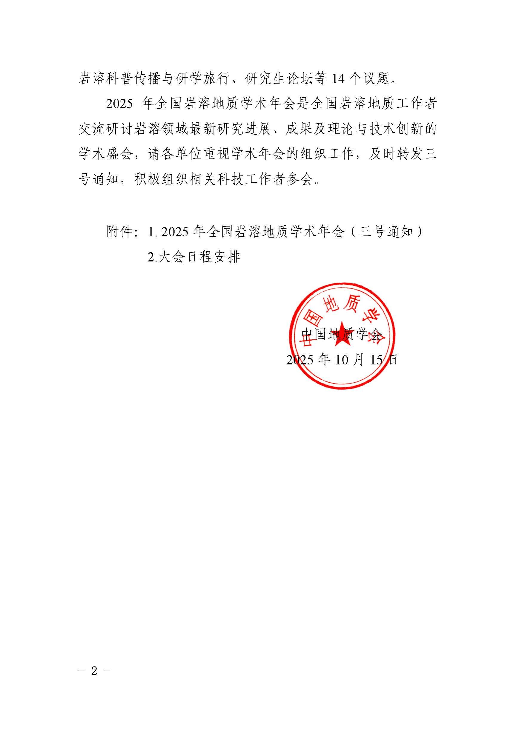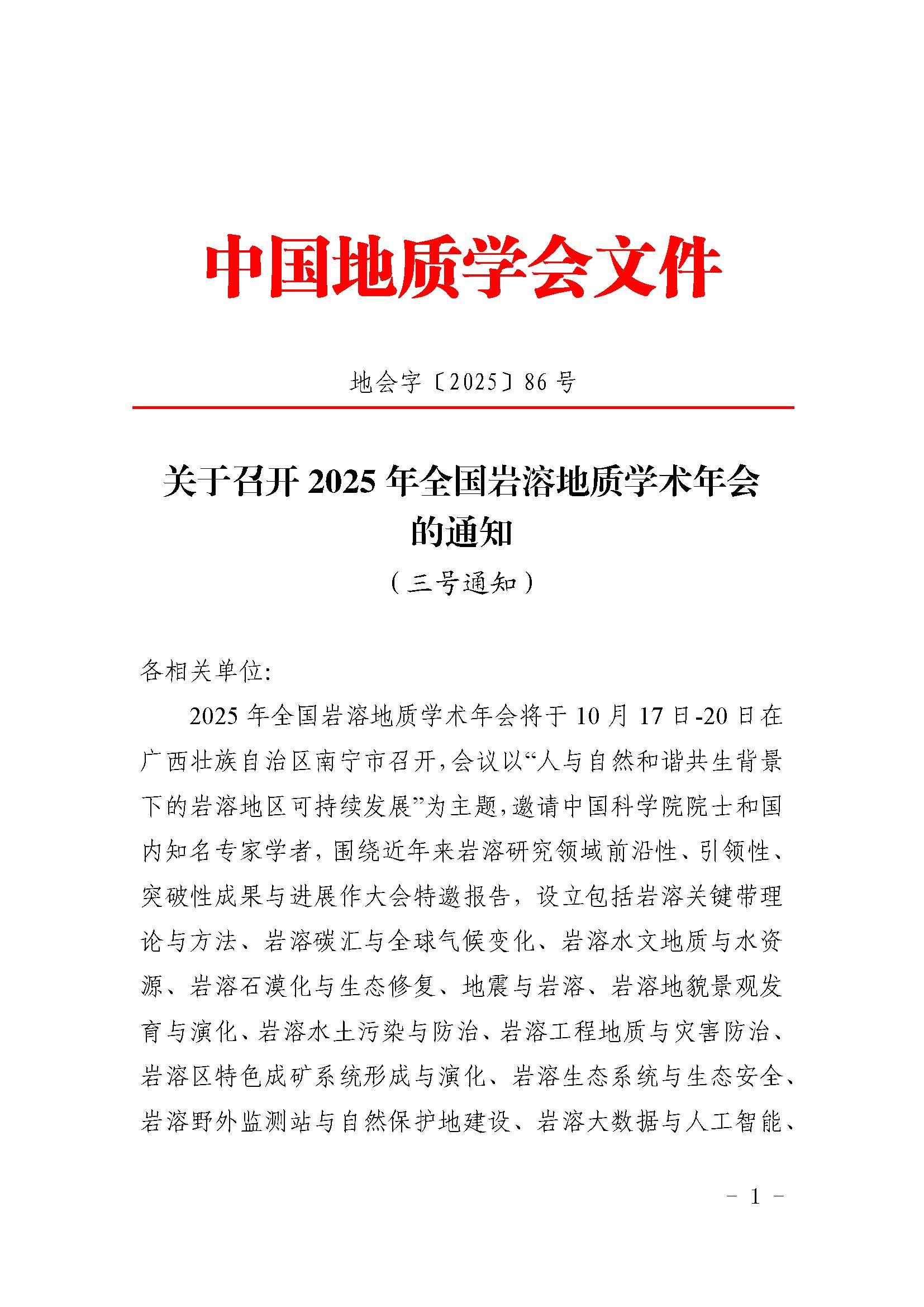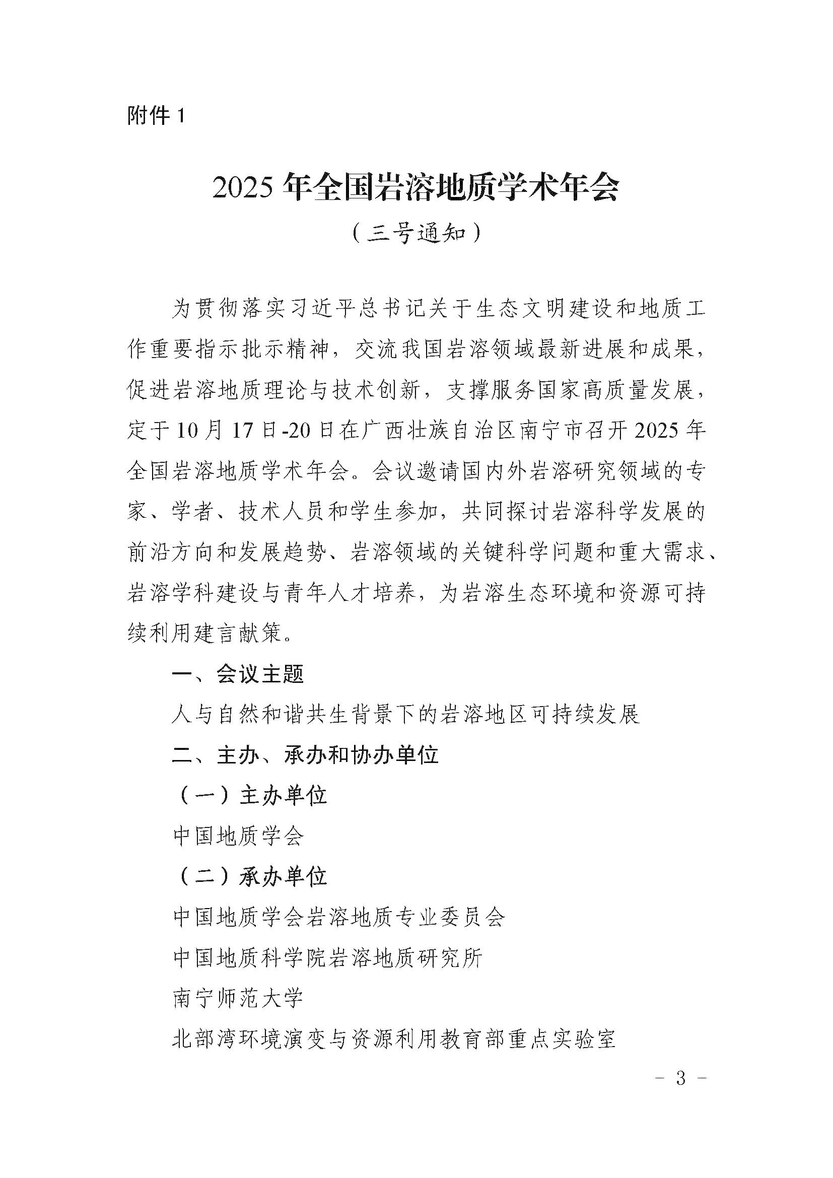 关于召开2025年全国岩溶地质学术年会的通知(三号)