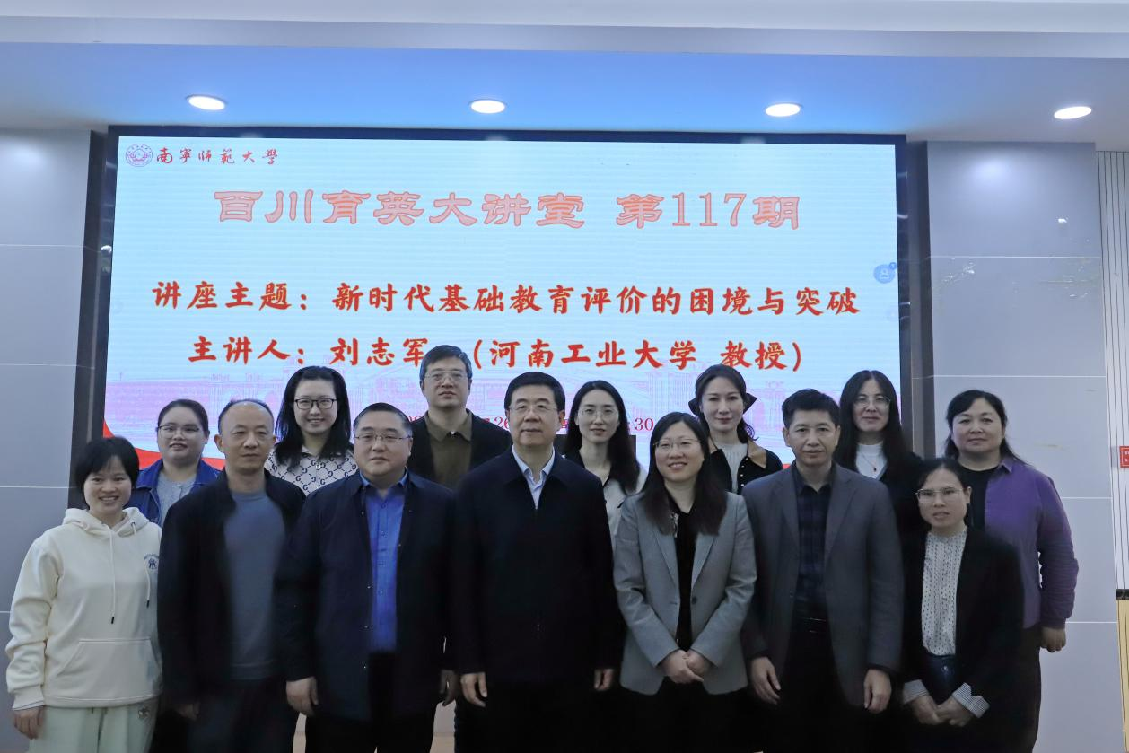 为深入解读新时代基础教育评价改革的核心要义,搭建学术研究与教育实践的沟通桥梁,助力教育强国建设,11月26日,由beat365平台官方网站教育科学学院主办、广西教育现代化与质量监测研究中心承办的《百川育英大讲堂》第117期讲座,在五合校区理综1003室顺利举行。本期讲座特邀河南工业大学党委书记刘志军教授担任主讲嘉宾,主题是“新时代基础教育评价的困境与突破”,教育科学学院院长李强教授主持讲座。