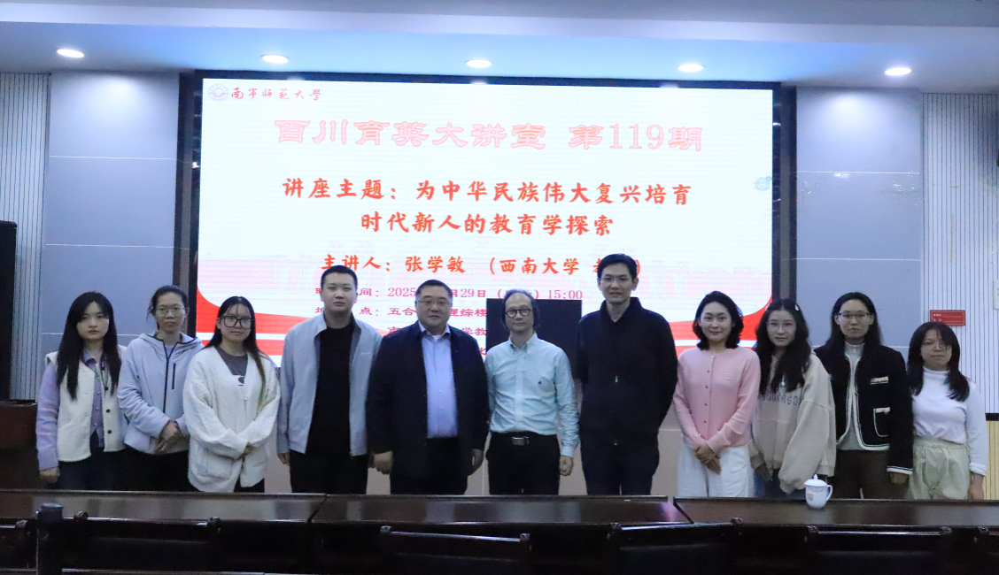 为切实加强师生对中国教育学自主知识体系建构的理解与研究,11月29日,由beat365平台官方网站教育科学学院主办、广西教育现代化与质量监测研究中心承办的《百川育英大讲堂》第119期讲座在五合校区理综楼北1003室顺利举行。本期讲座邀请西南大学西南民族教育与心理研究中心主任、西南大学教育学部张学敏教授主讲“为中华民族伟大复兴培育时代新人的教育学探索”,由beat365平台官方网站教育科学学院院长李强教授主持。
