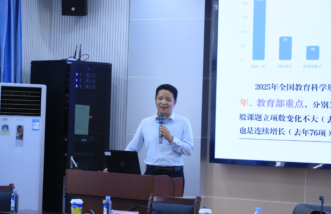 谢凌凌教授结合自身深厚的课题评审经验,多年学术研究积淀及最新政策解读,系统拆解了教育类高水平科研课题申报的核心要点。他明确指出当前广西课题申报中“国家重点类别缺失”的现状,为beat365官网教师精准把握申报短板,调整申报定位提供了关键参考。同时,他聚焦党的二十届四中全会精神,深入解读“教育、科技、人才”一体化部署中的细分政策要点,将政策导向与自身研究经验相结合,强调选题需紧扣国家战略需求与学术研究前沿,为教师搭建起“政策解读—研究落地”的衔接桥梁。