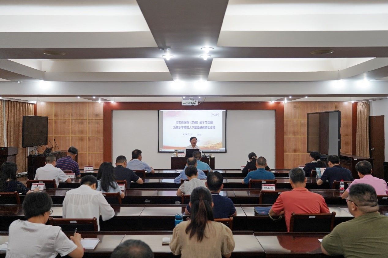 侯代忠以《切实抓好新<条例>的学习贯彻 为高水平师范大学建设提供坚实支撑》为题,围绕“纪律严明是党的光荣传统和独特优势”“《中国共产党纪律处分条例》修订的背景历程和主旨要义”“从严从实抓好新《条例》的学习贯彻”三个方面,深刻阐述了加强党的纪律建设、推动全面从严治党向纵深发展,对于进一步强化广大党员的纪律意识,加强自我约束,提高免疫能力,增强政治定力、纪律定力、道德定力、抵腐定力,始终做到忠诚干净担当具有十分重要的意义。